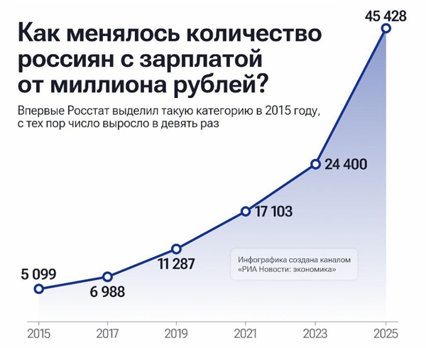 Рынок труда демонстрирует впечатляющий рост числа высокооплачиваемых специалистов в России. Согласно последним данным, 45 000 россиян получают ежемесячный доход свыше 1 миллиона рублей. Это в два раза больше показателей двухлетней давности.